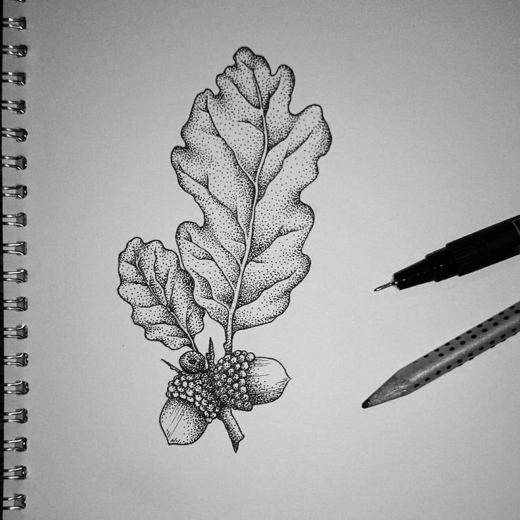 ![Тату дубовые листья эскизы]()