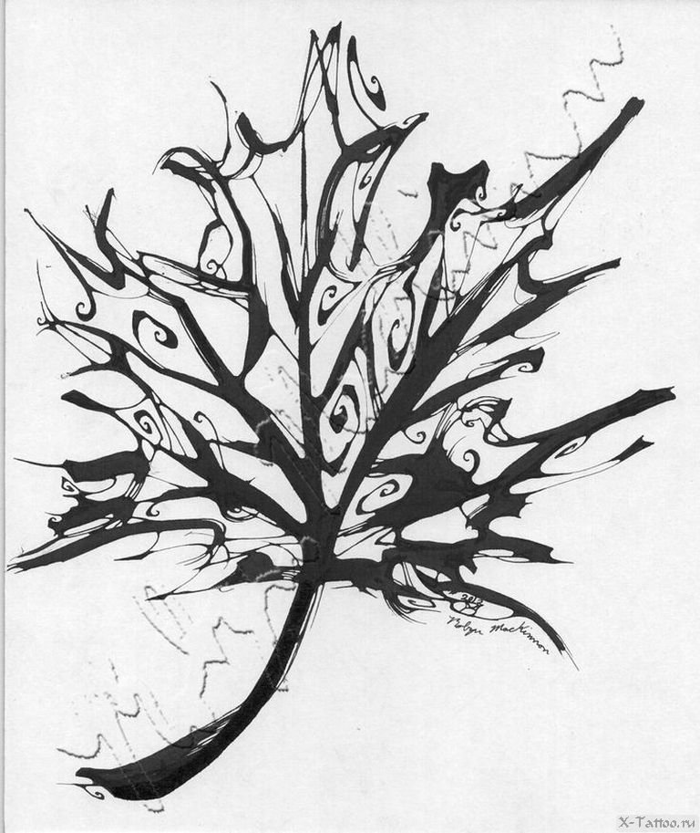 ![Кленовый лист тату эскиз]()