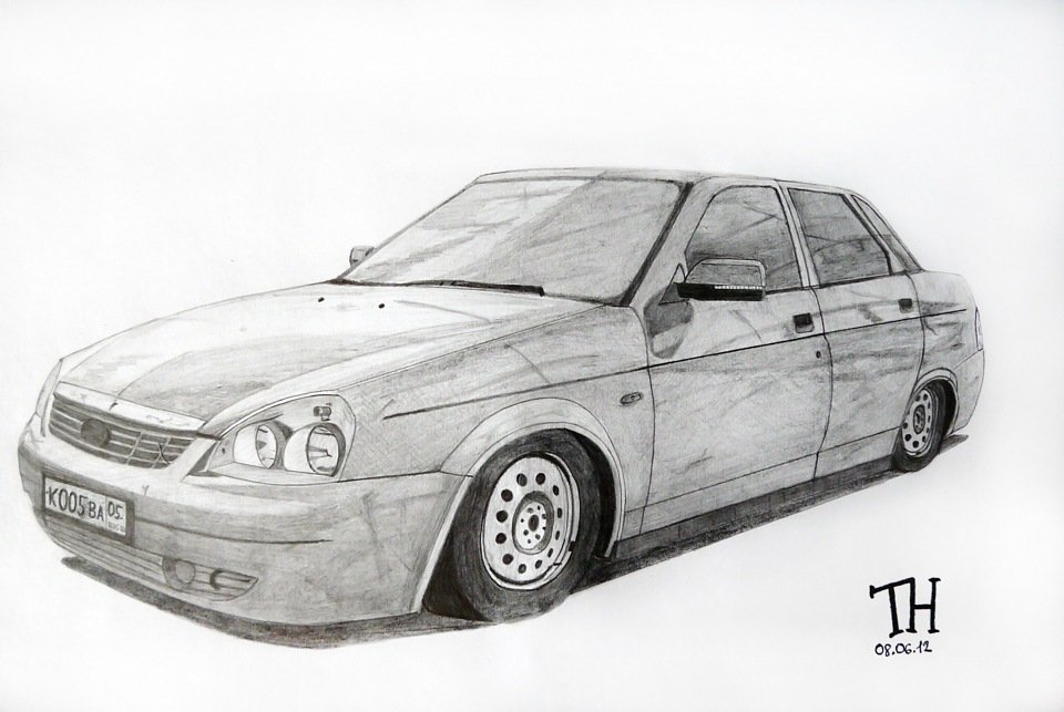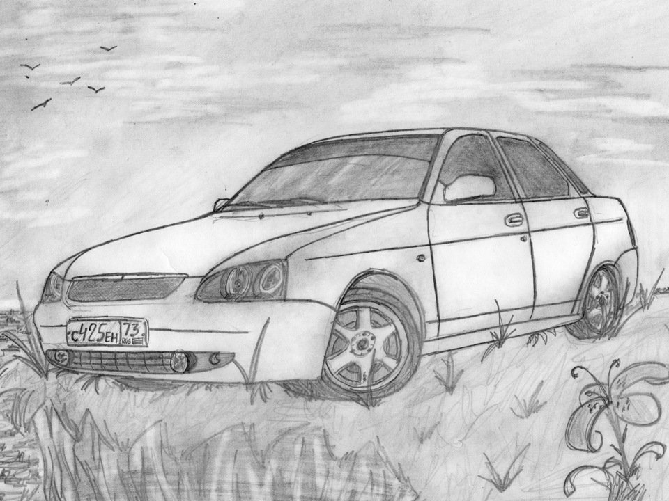 ![Лада Приора карандашом сбоку]()