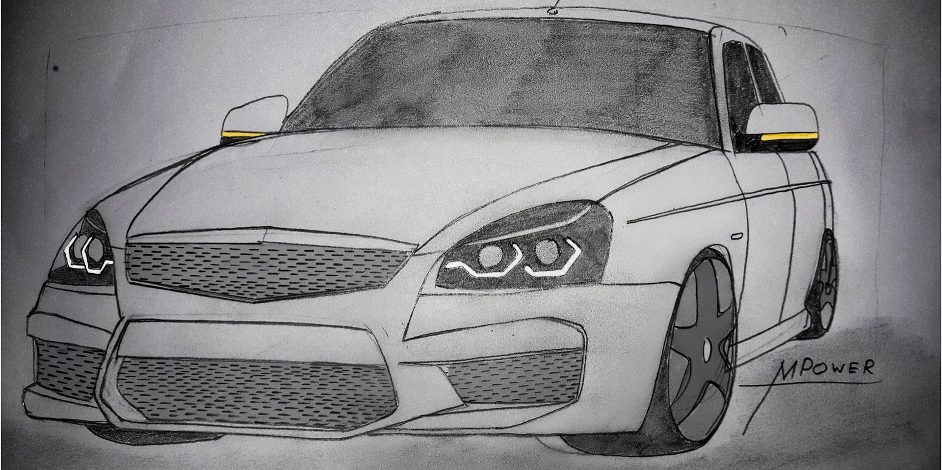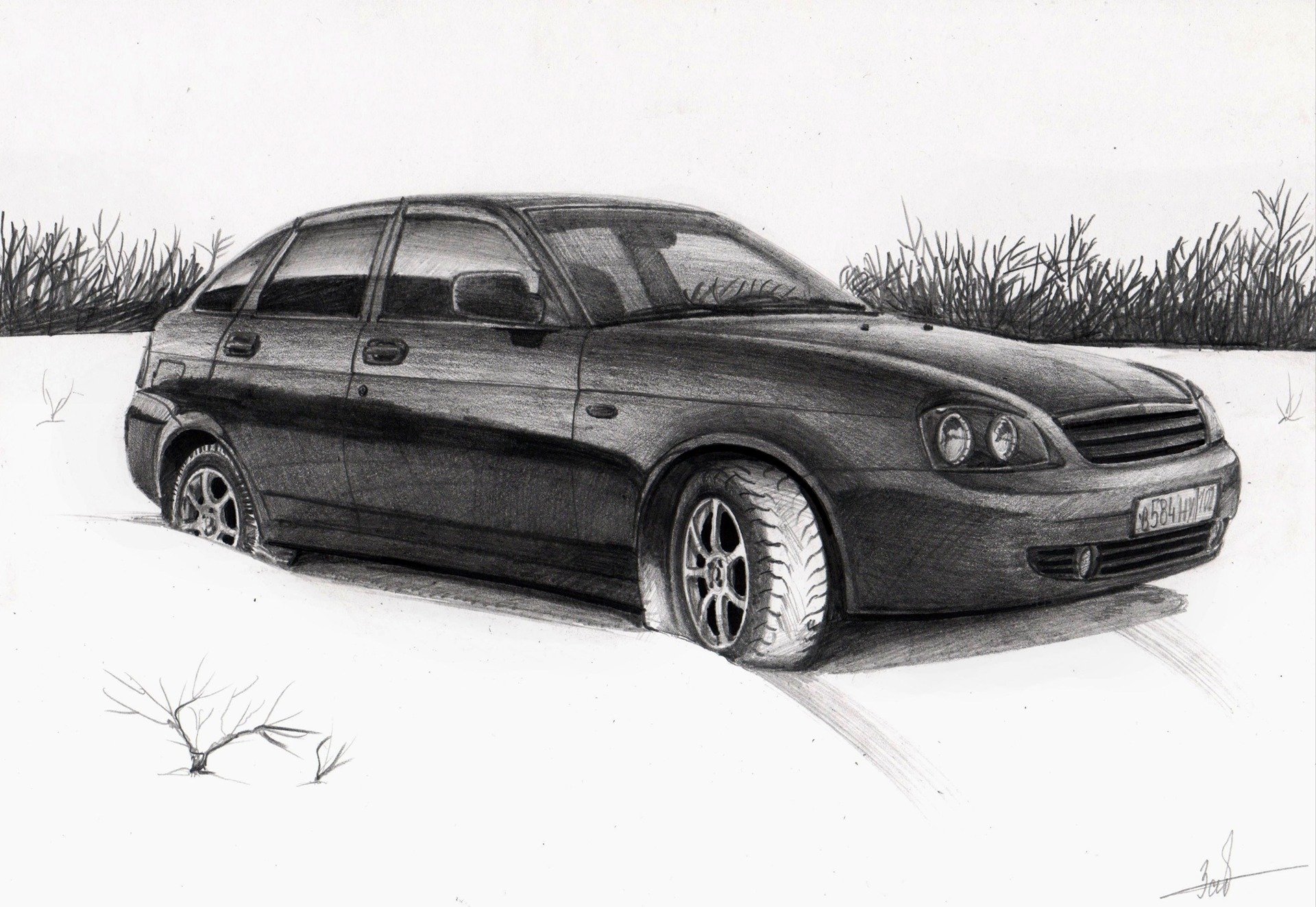 Лада Приора карандашом сбоку