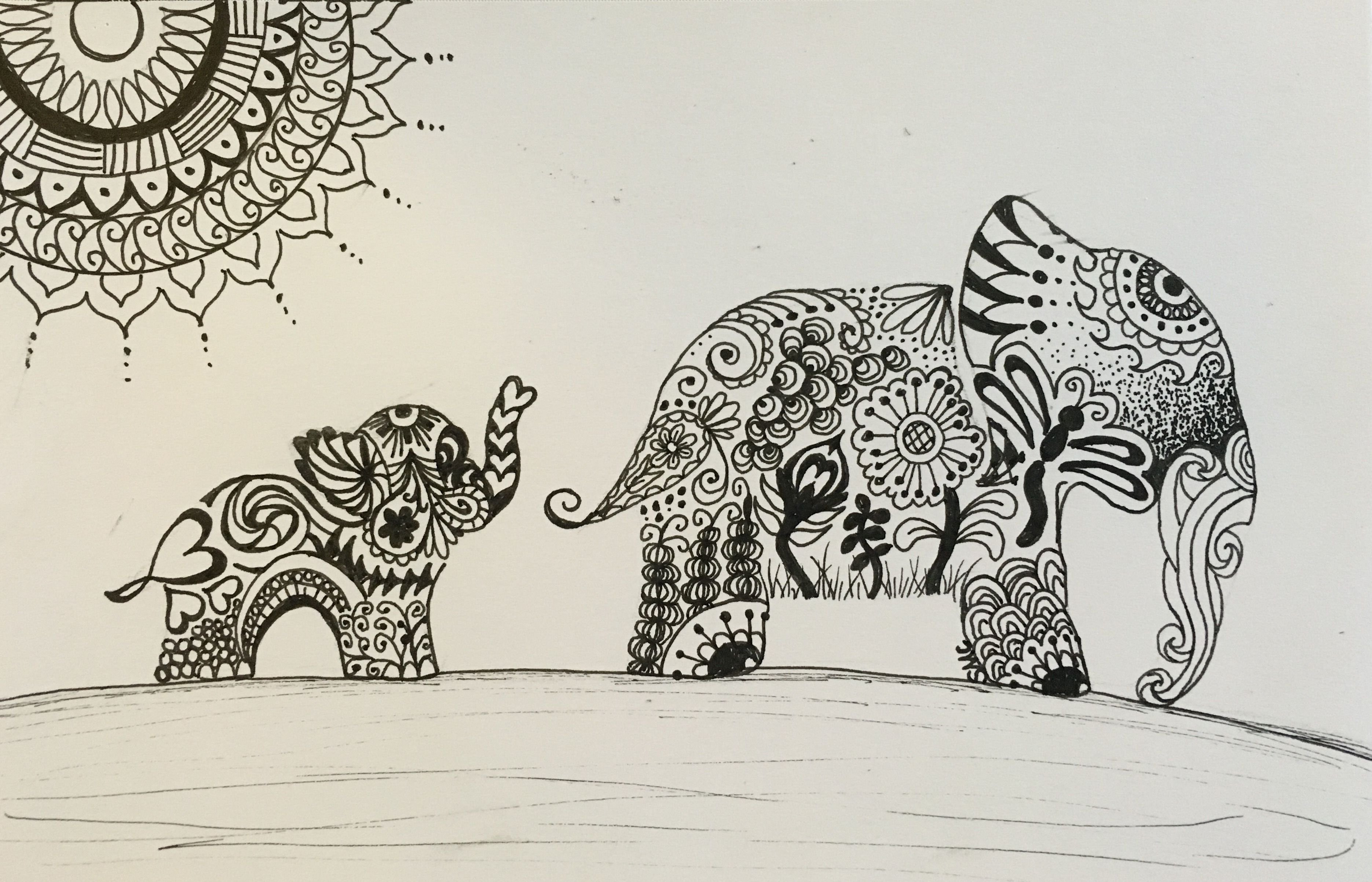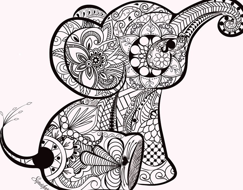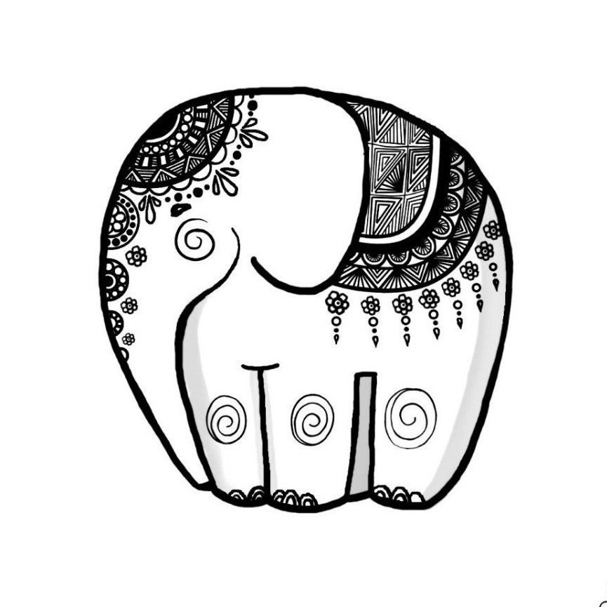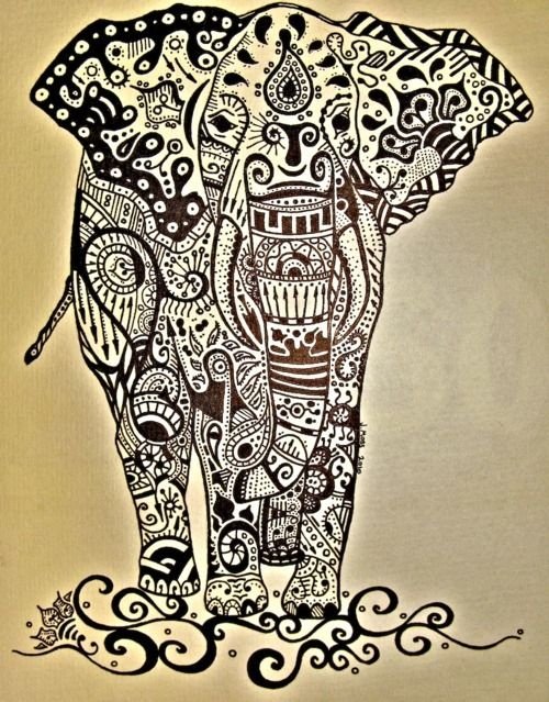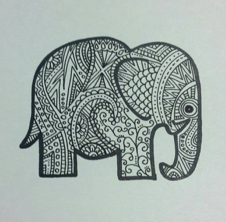 ![Рисунки для срисовки слон в стиле дудлинг]()
