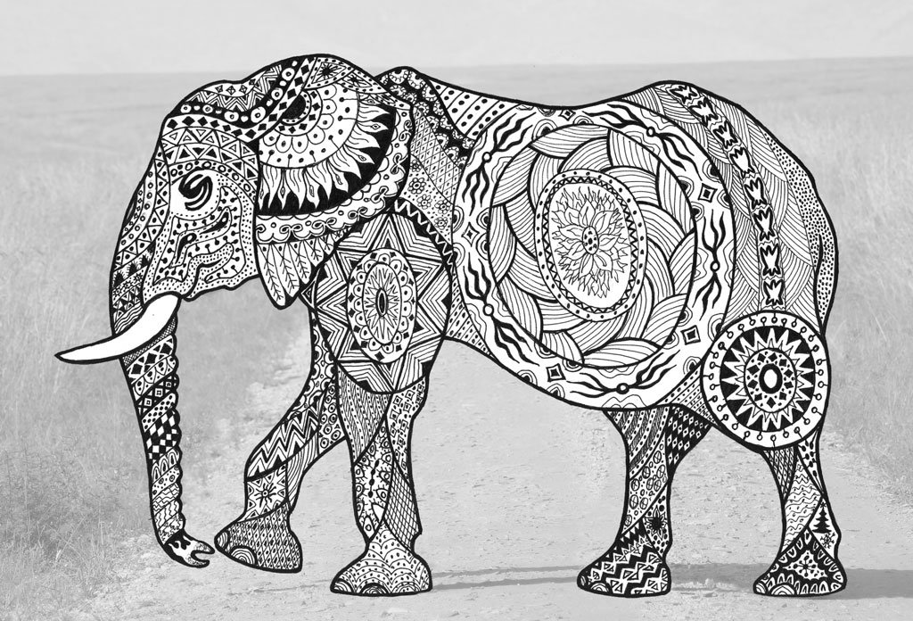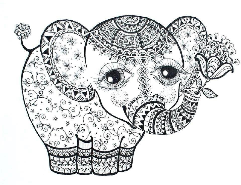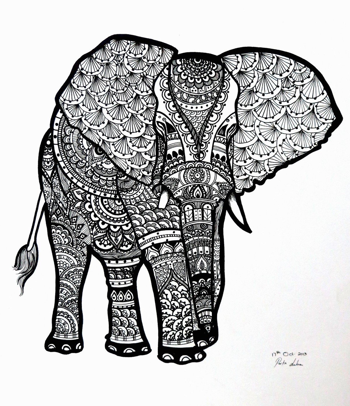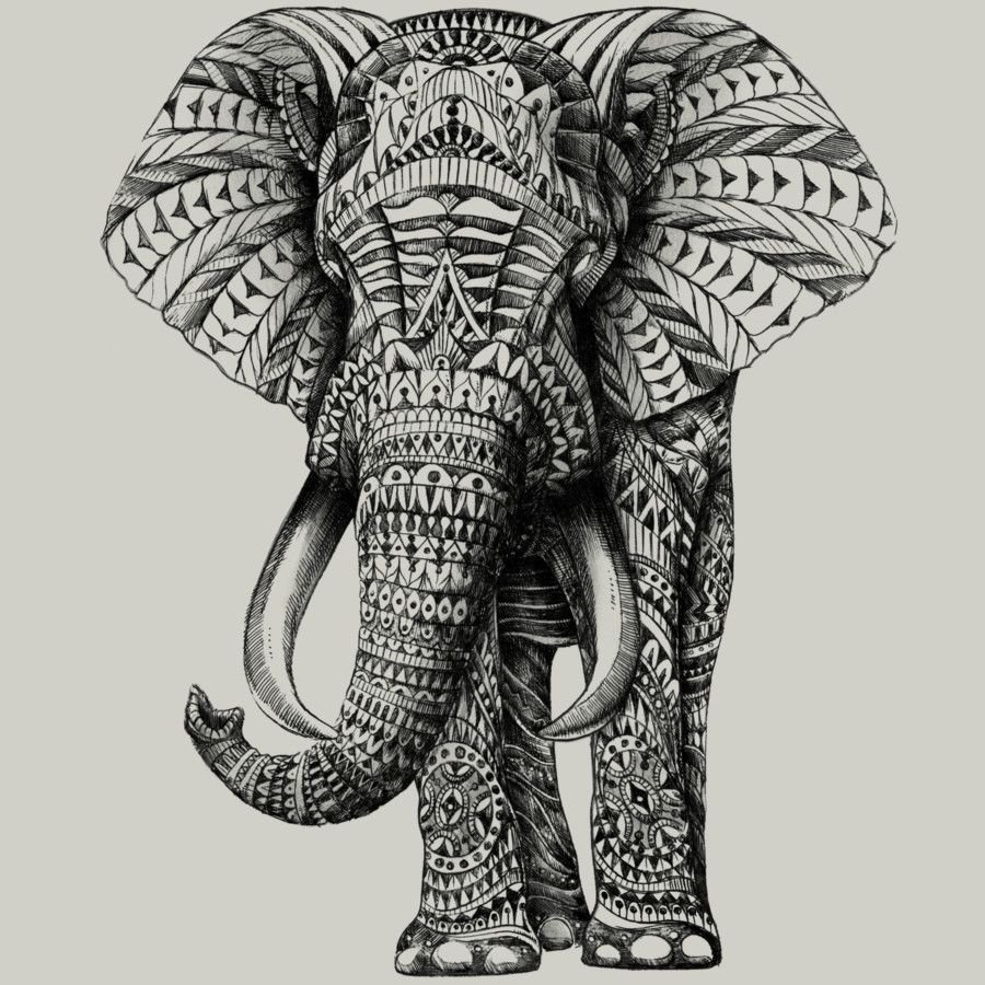 ![Рисунки для срисовки слон в стиле дудлинг]()