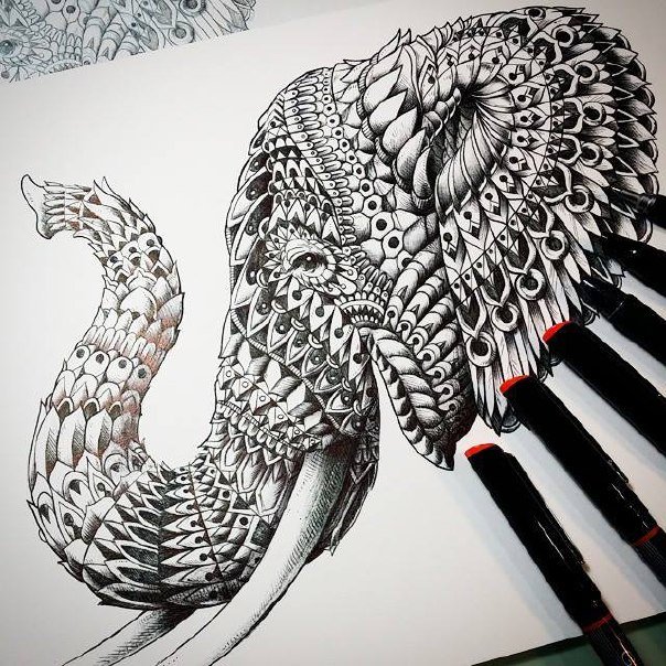 ![Рисунок слона гелевой ручкой (50 фото)]()
