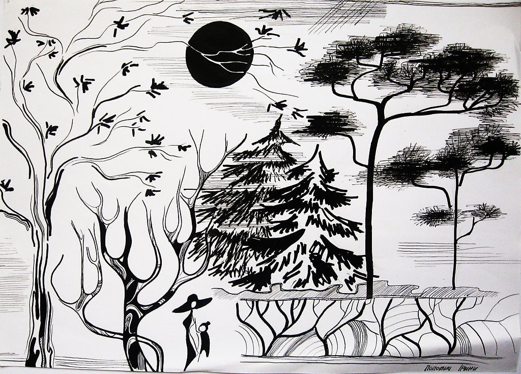 ![Графические зарисовки деревьев]()