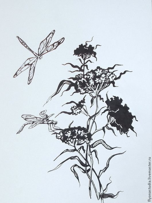 ![Цветы тушью]()