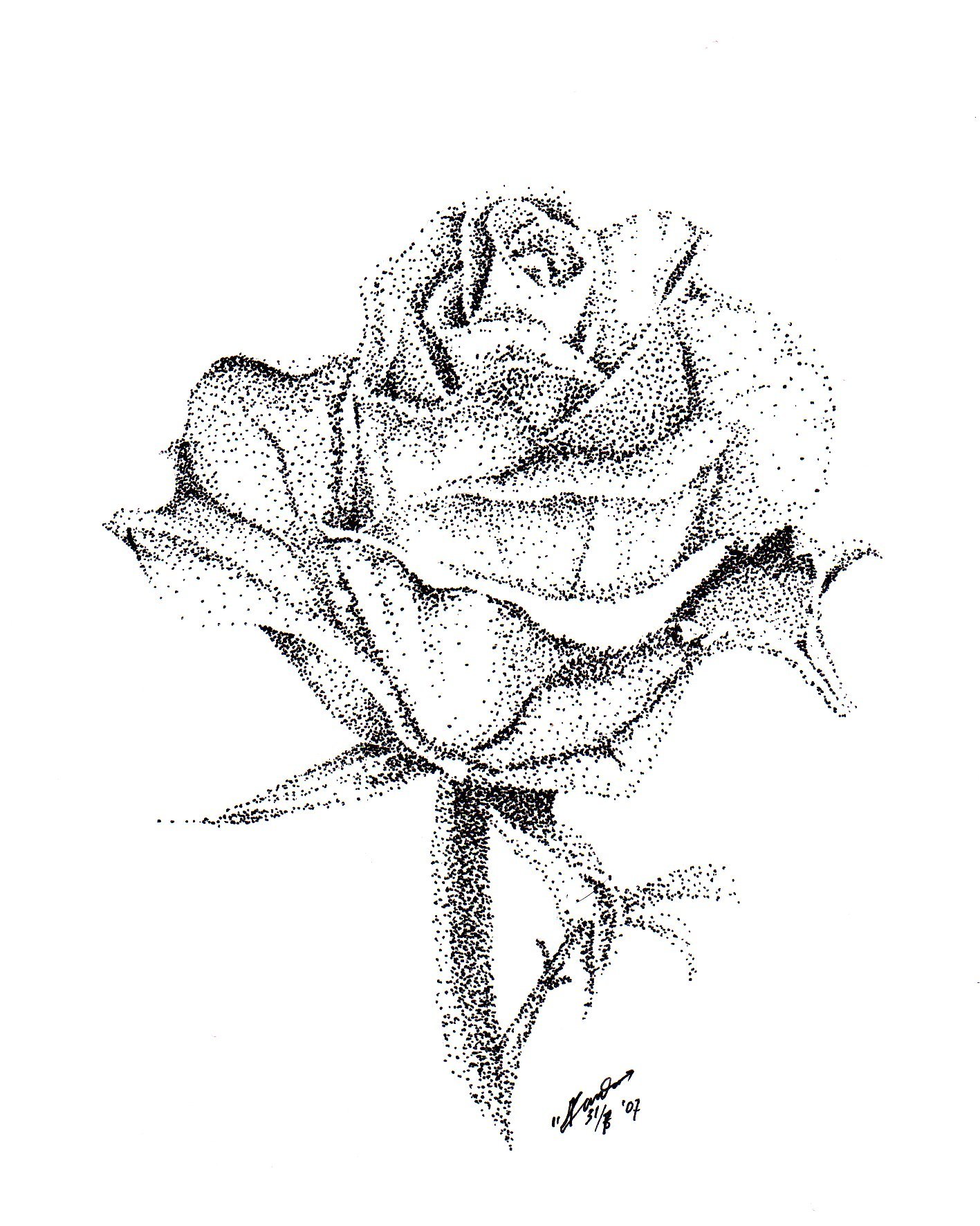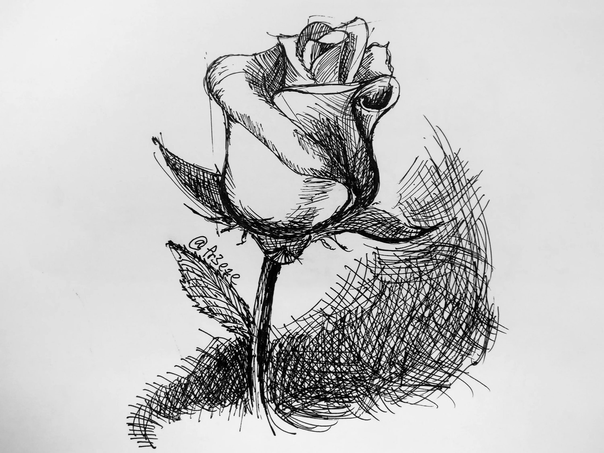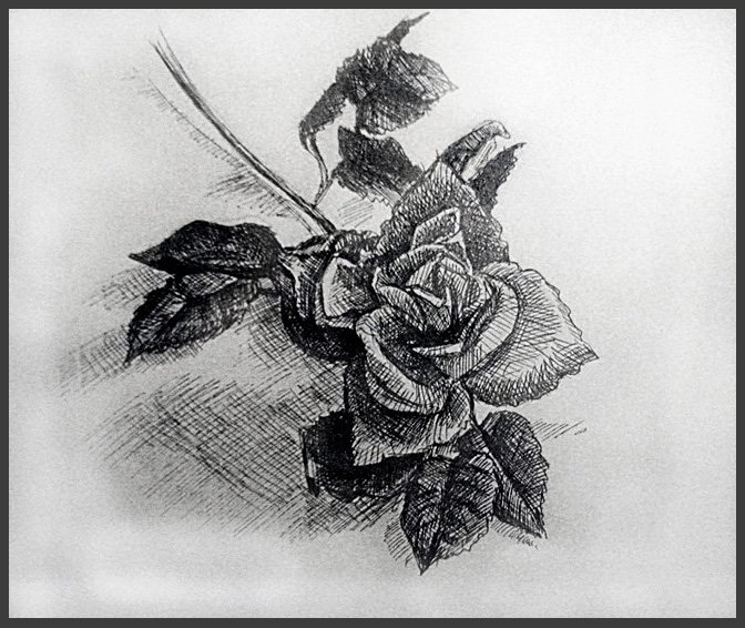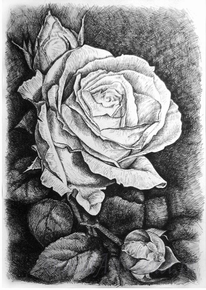 ![Роза черной ручкой]()