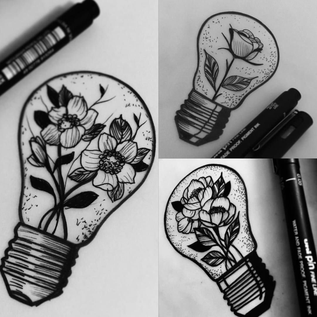 ![Тату лампочка эскиз]()