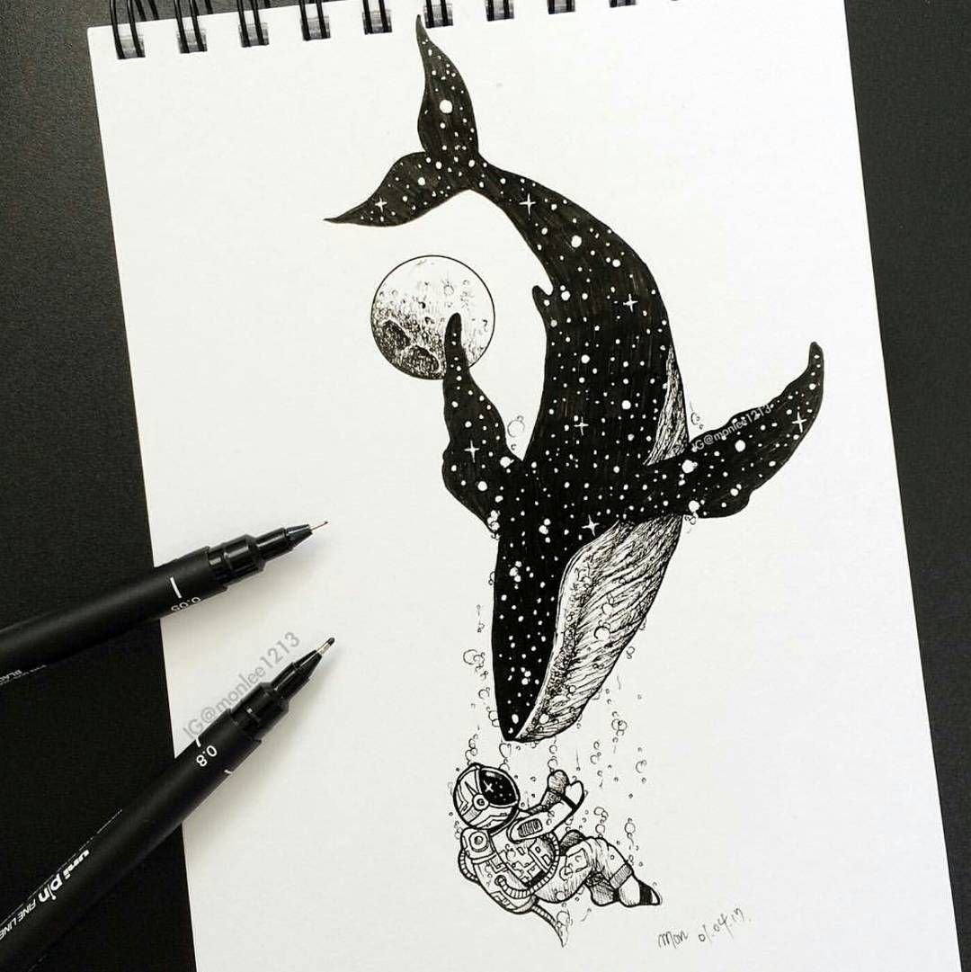 ![Рисунки в скетчбуке черной ручкой легкие]()