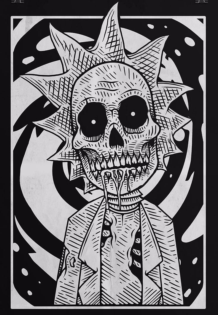 ![Рик и Морти черно белые]()