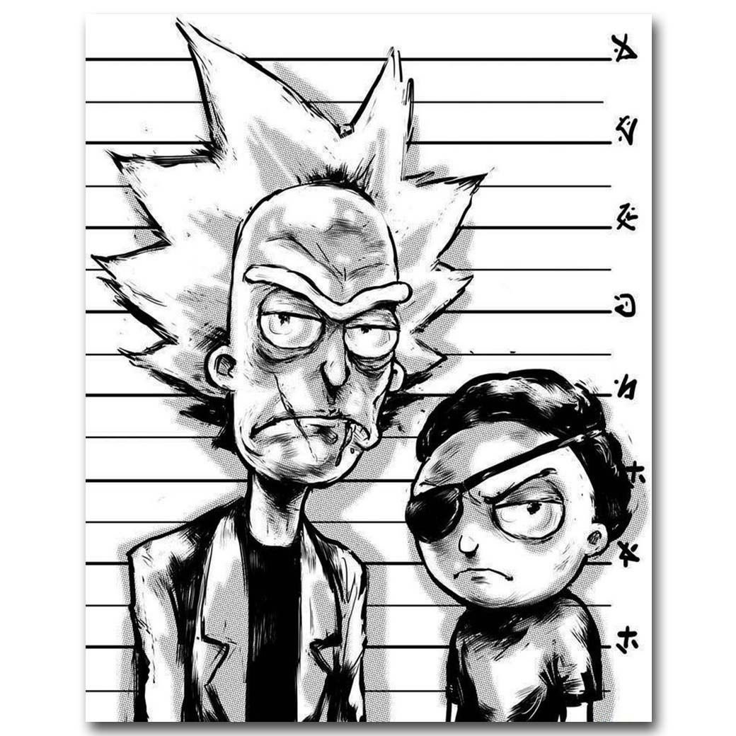 Рик и Морти черно белые