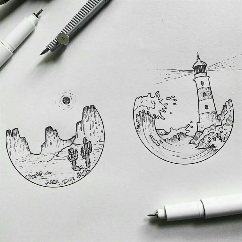 ![Рисунки в скетчбуке черной ручкой легкие]()