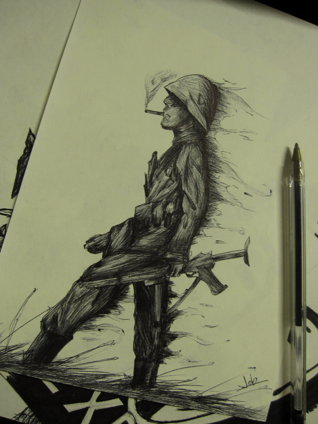![Солдат рисунок ручкой]()