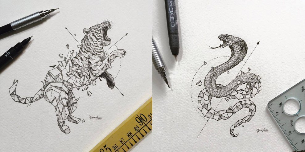 ![Kerby Rosanes геометрические животные тату]()
