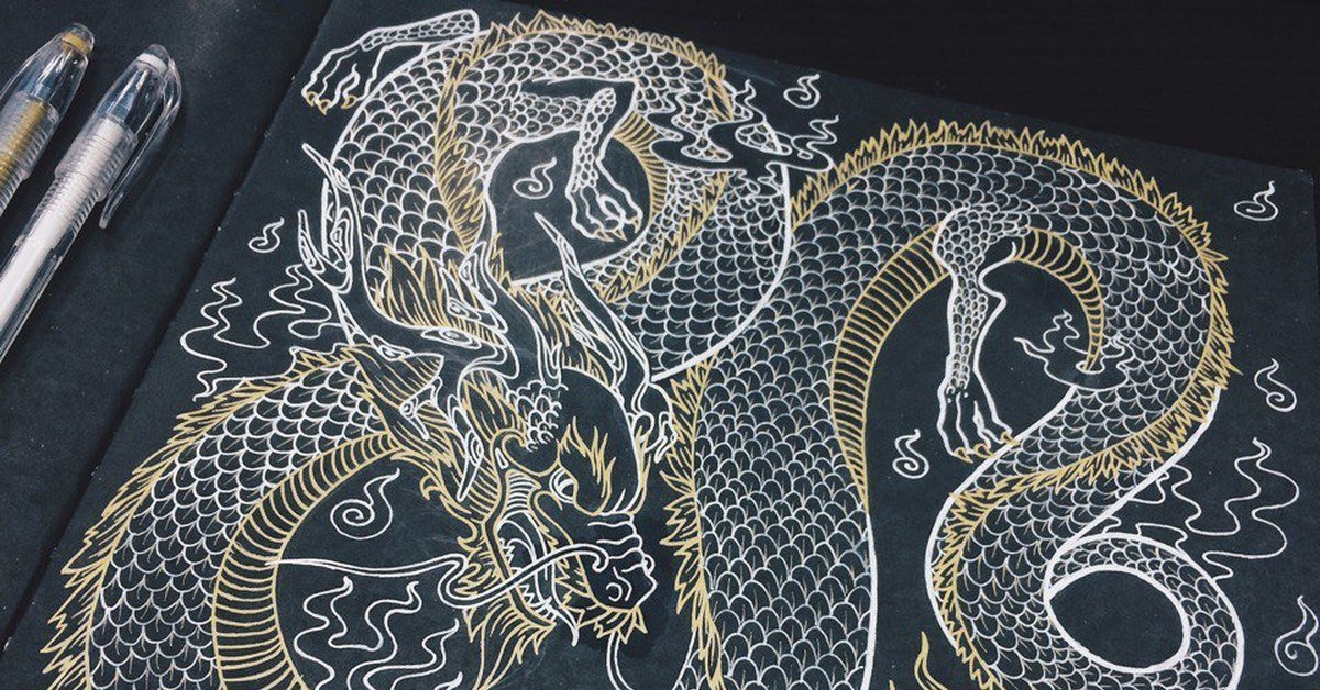 Дракон гелевой ручкой