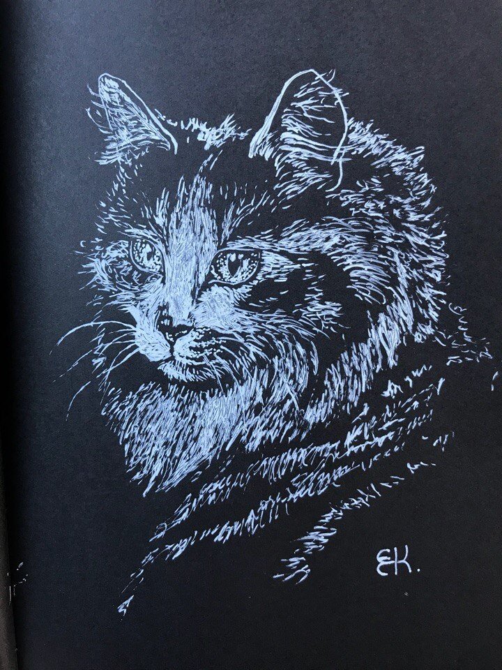 Кошка гелевой ручкой