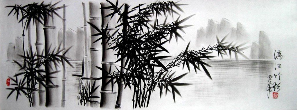 ![Китайская живопись тушью бамбук]()