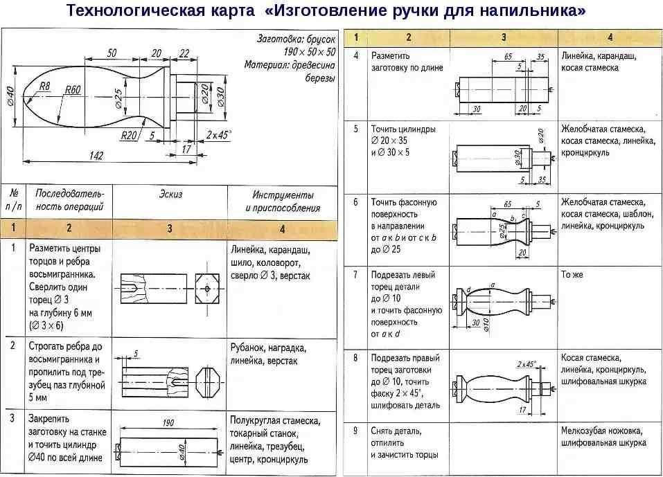 ![Технологическую карту изготовления ручки на токарном станке.]()