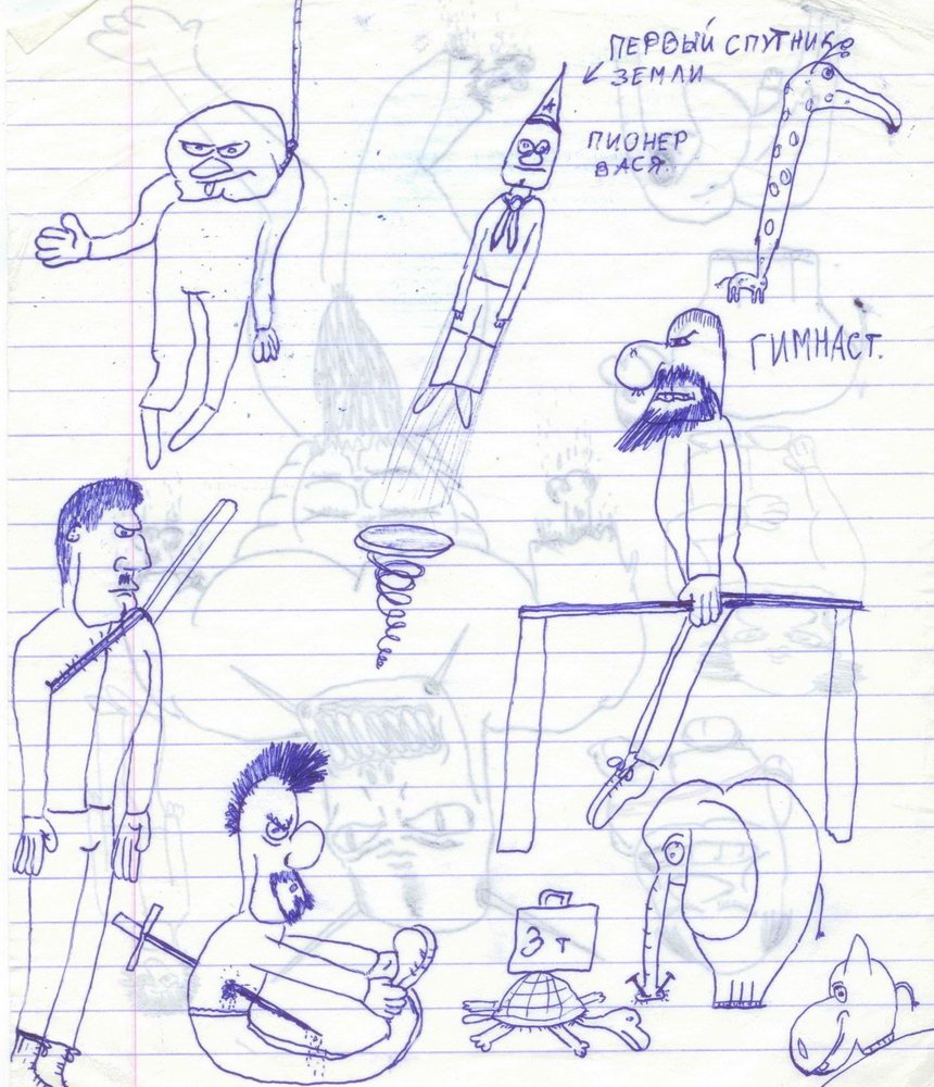 ![Зарисовки ручкой в тетради]()