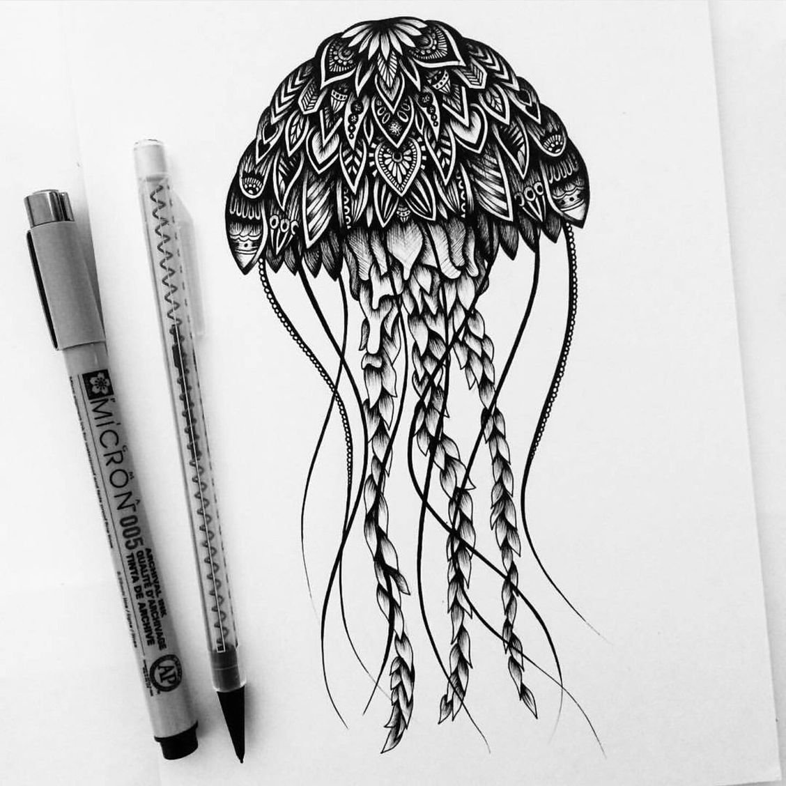 ![Рисунки чёрной гелевой ручкой]()