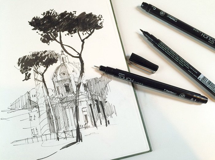Рисунки в скетчбуке черной ручкой легкие
