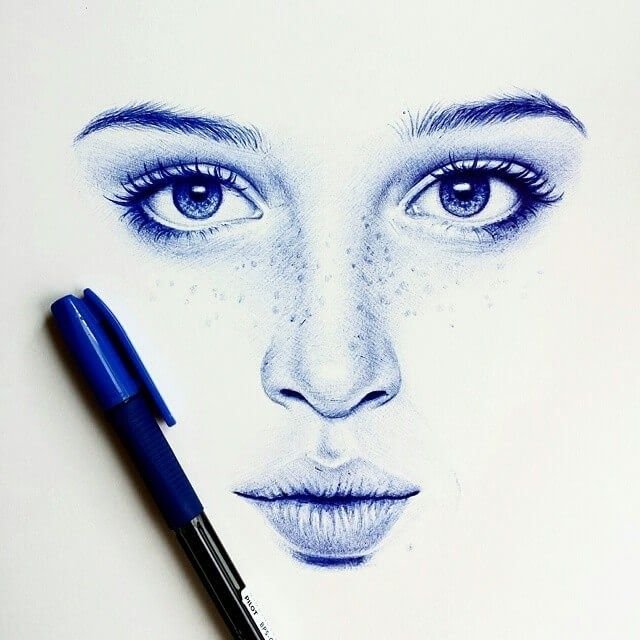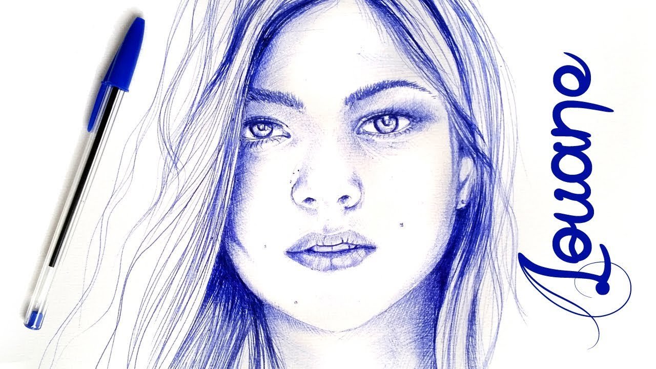 ![Рисование портрета шариковой ручкой]()