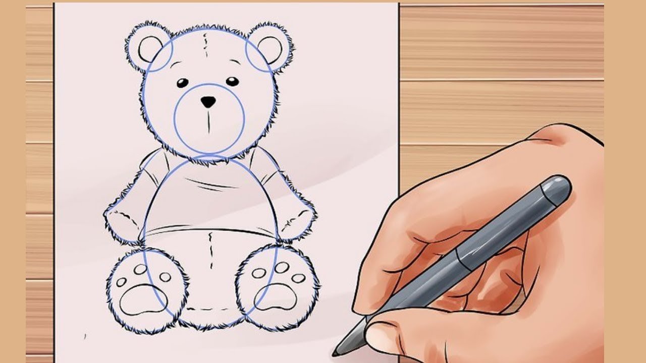 ![Мишка Тедди карандашом для срисовки]()
