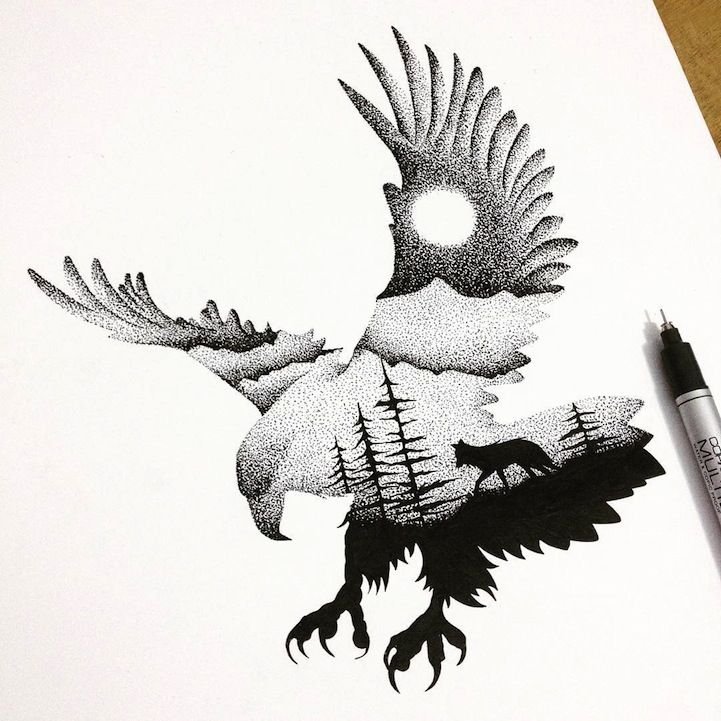 ![Птица в стиле дотворк]()