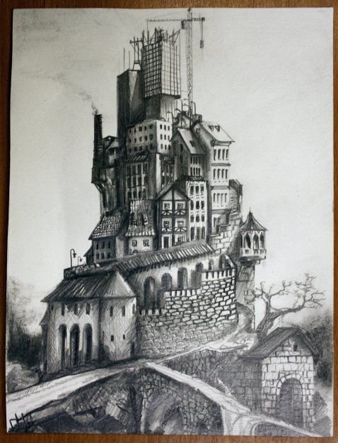 ![Скетч перспектива архитектура Графика карандаш]()