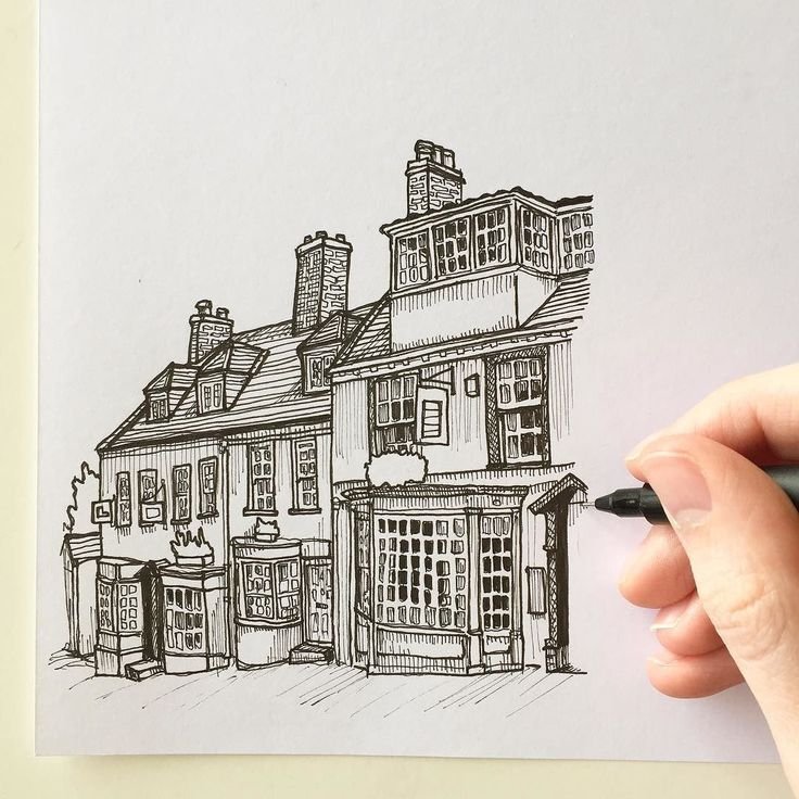 Здания черной ручкой