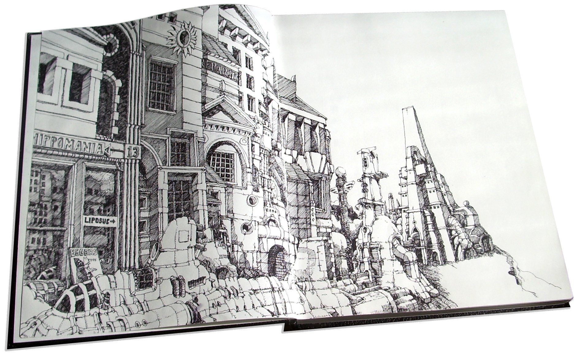 ![Архитектурный пейзаж гелевой ручкой]()