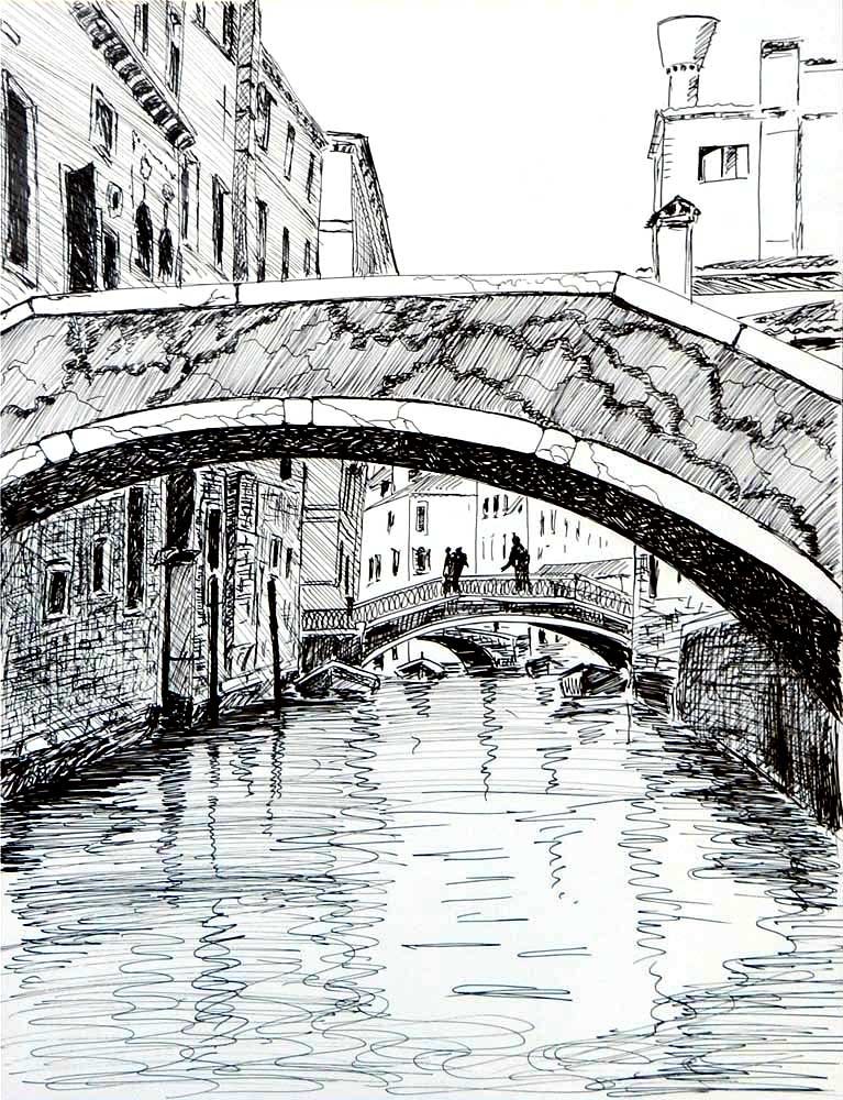 ![Архитектурный пейзаж гелевой ручкой]()