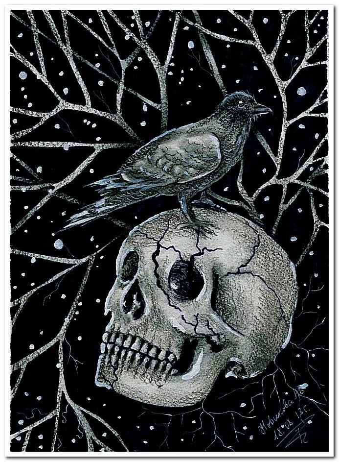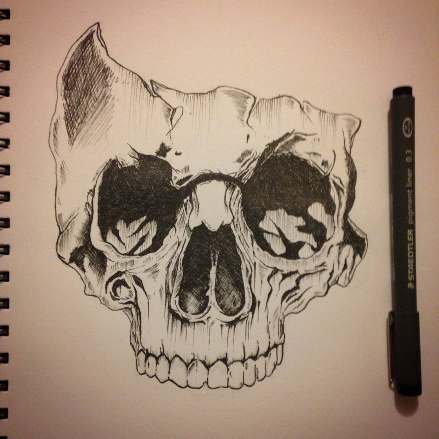 ![Рисунки чёрной гелевой ручкой черепа]()
