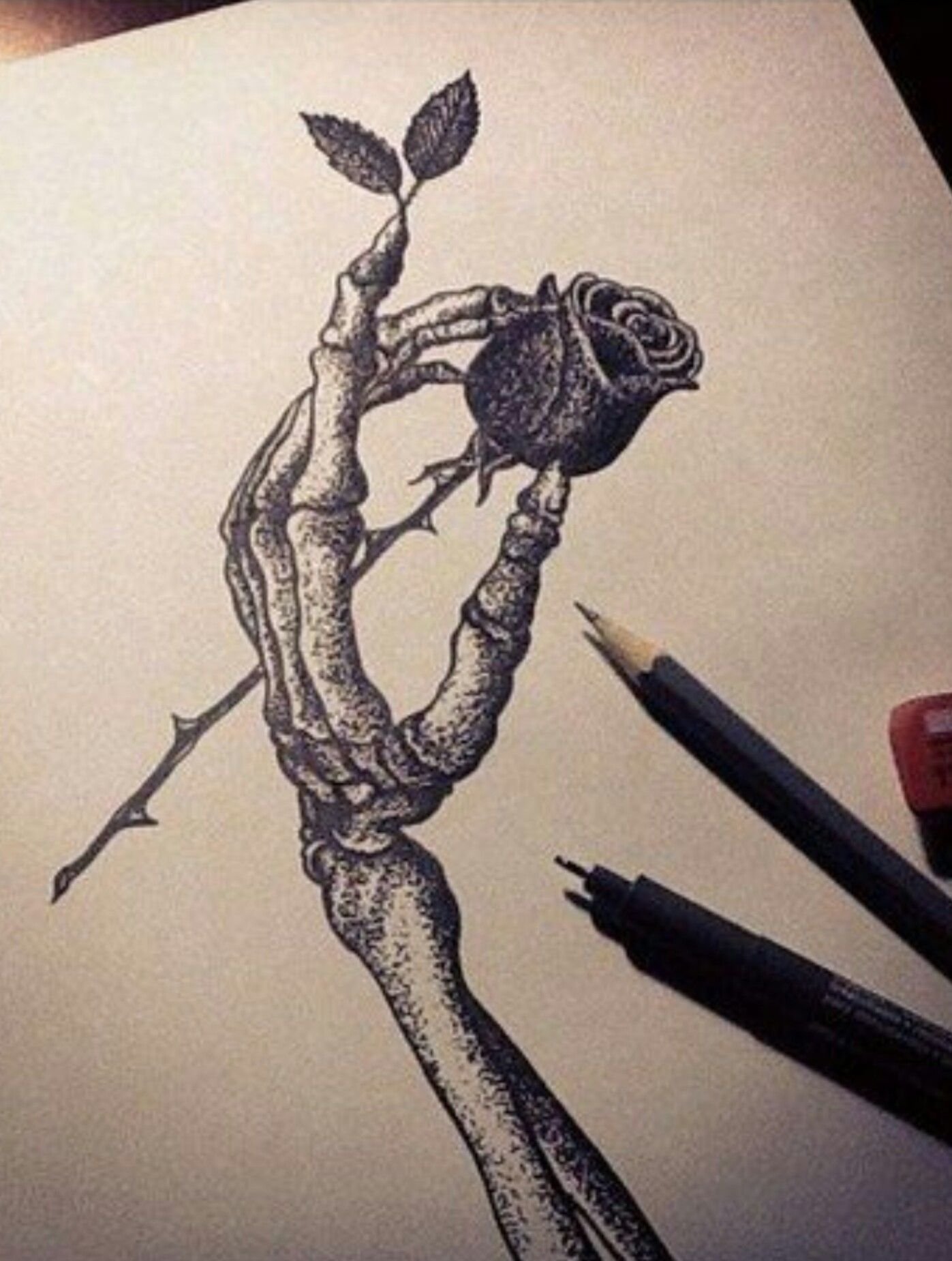 ![Кисть скелета с розой эскиз]()