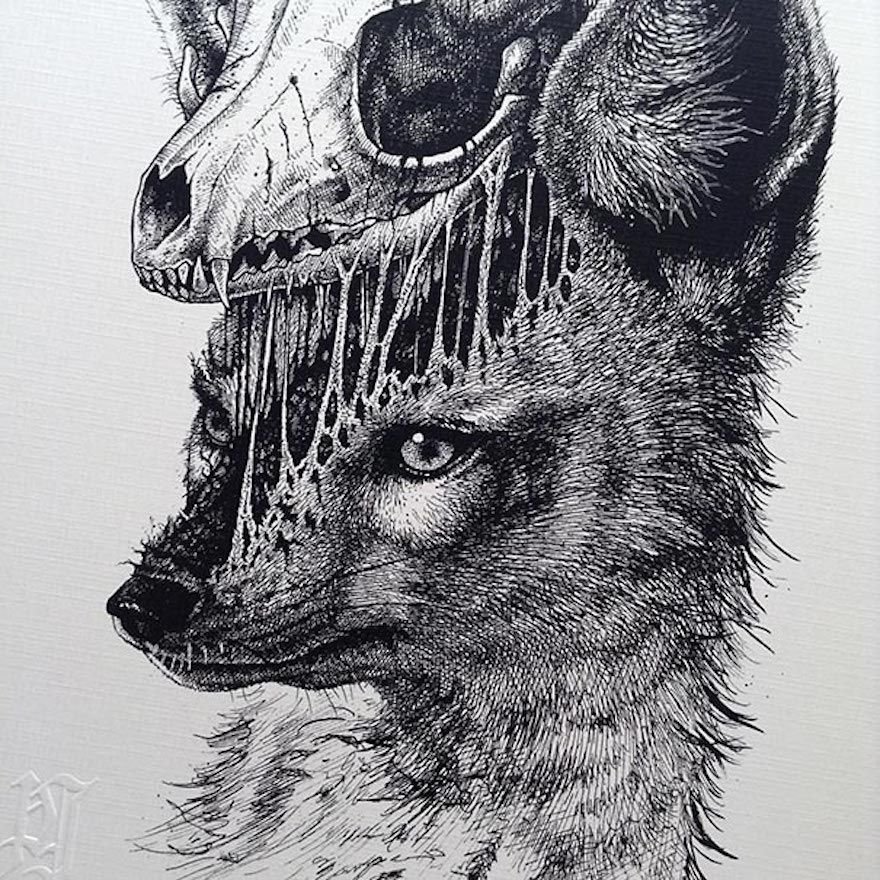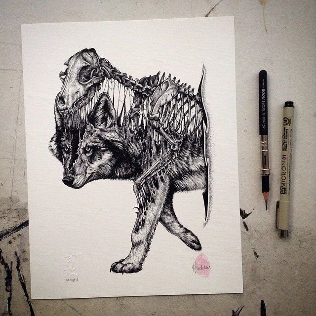 Скелеты животных карандашом