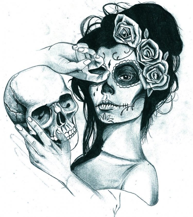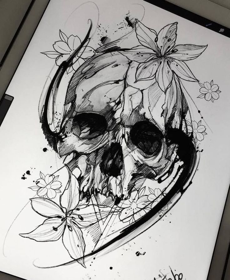 ![Череп тату эскиз]()