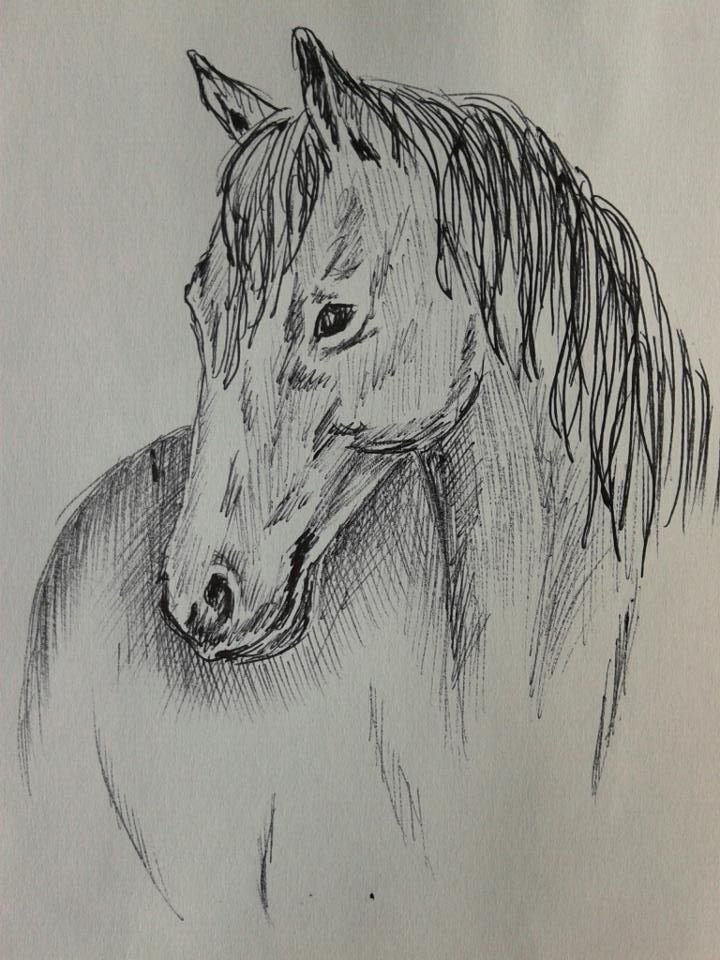 ![Лошадь рисунок черной ручкой]()