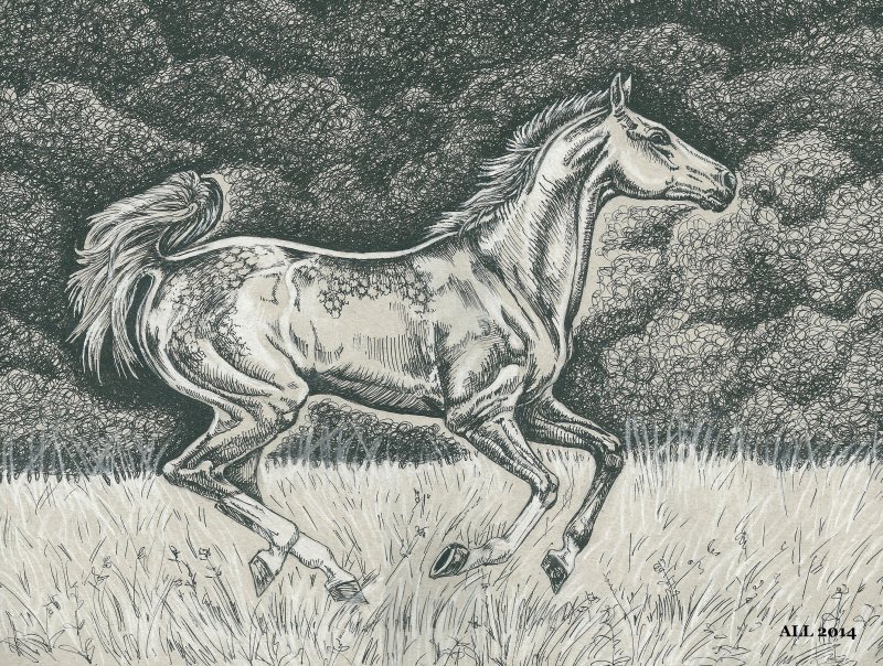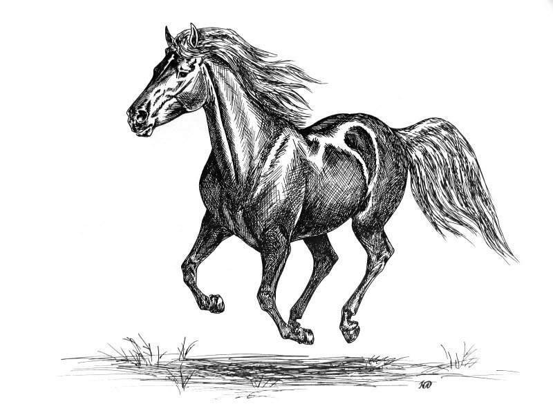 ![Лошадь черной ручкой]()