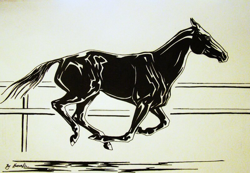 Лошадь черной ручкой