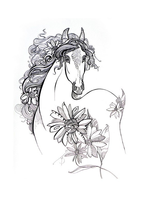 Эскиз лошадь с цветами