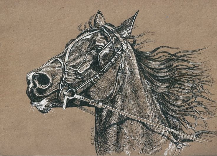 Лошадь рисунок черной ручкой