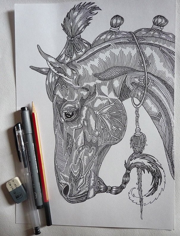 Стилизовать лошадь гелевыми ручками