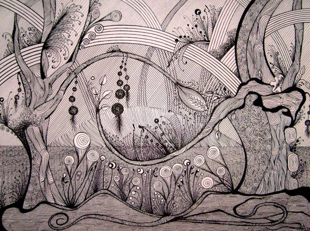 ![Стилизованный пейзаж гелевой ручкой]()