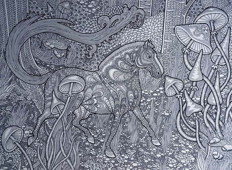 Арт гелевой черной ручкой