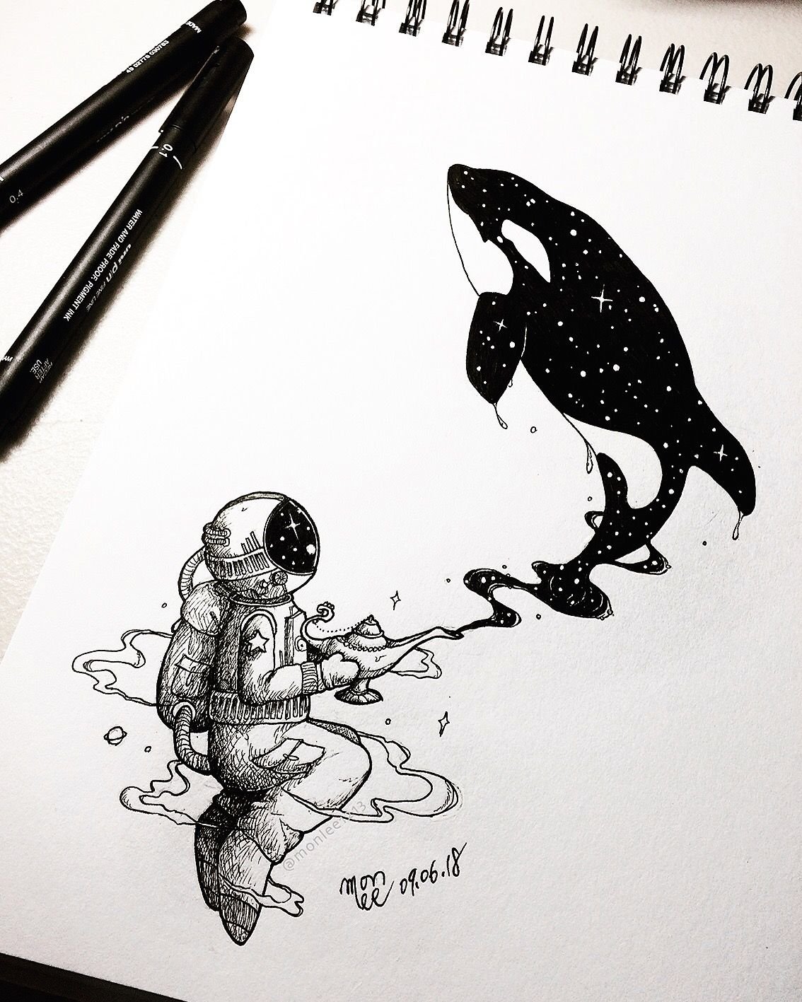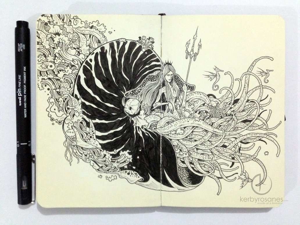 ![Рисунки чёрной гелевой ручкой]()