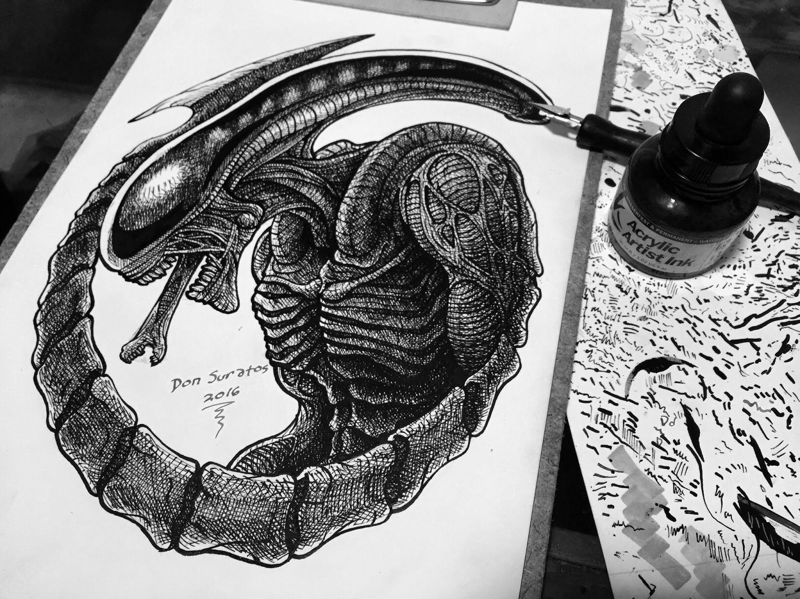 ![Арт гелевой черной ручкой]()