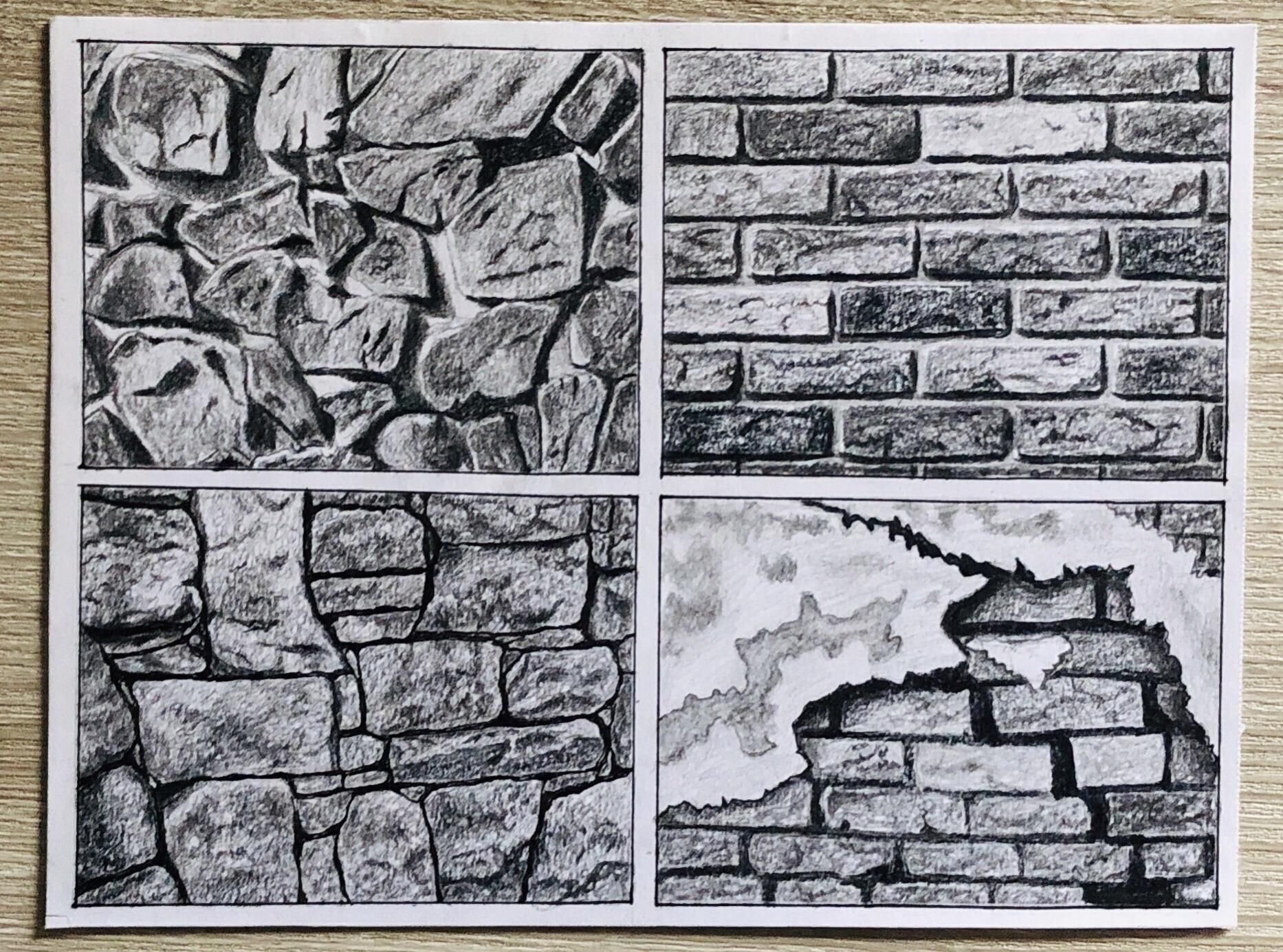 ![Кирпичная стена рисунок карандашом]()