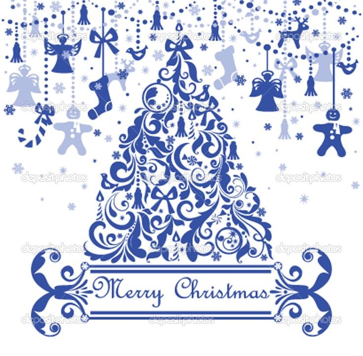 ![Новогодняя открытка в стиле Гжель]()