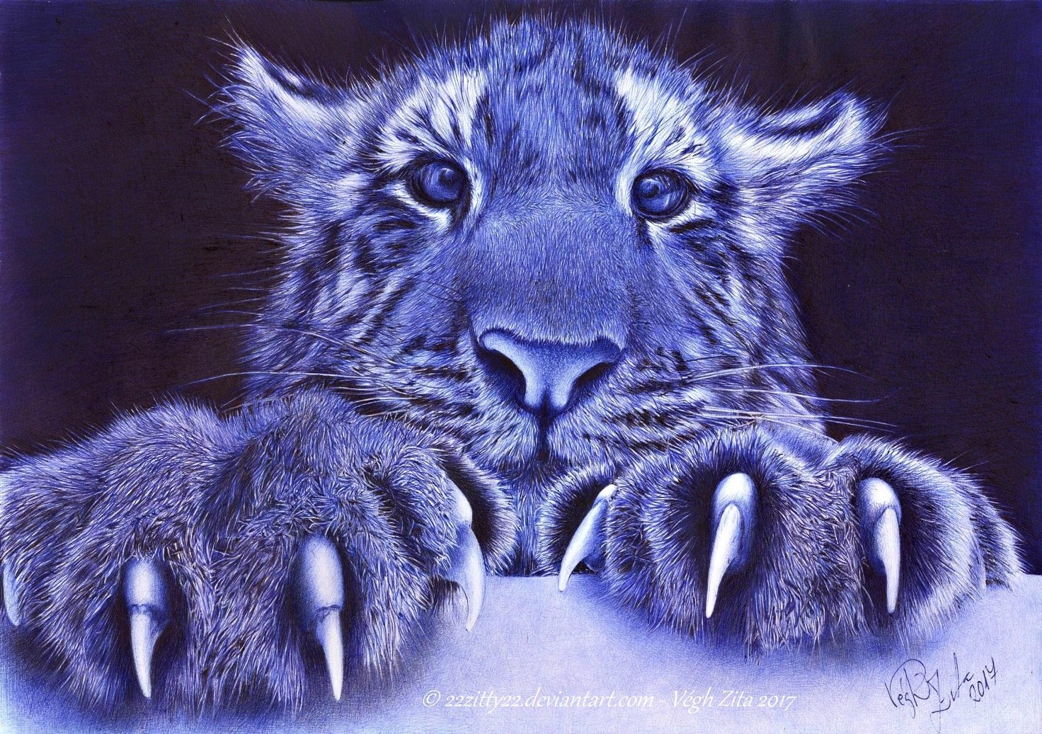 Животные ручкой синей