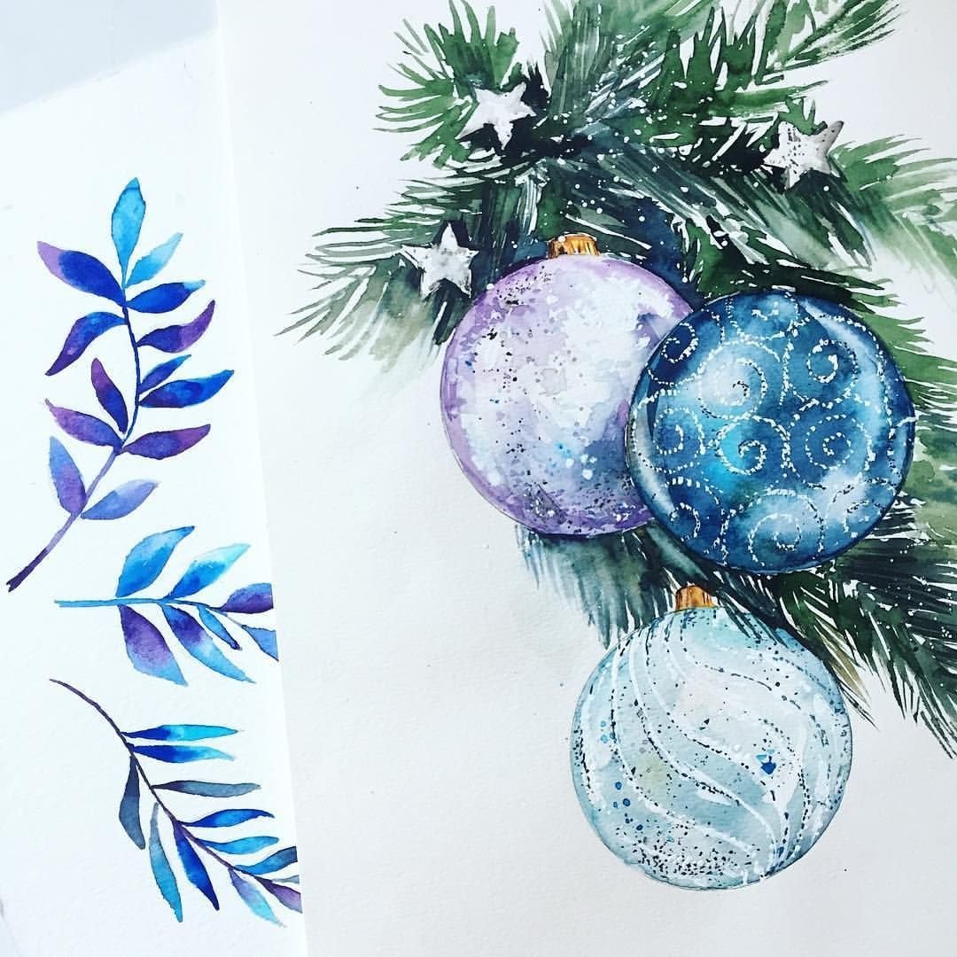 ![Новогодние рисунки акварелью]()