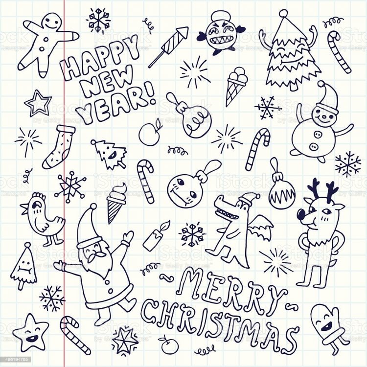 Рисунки на новый год ручкой